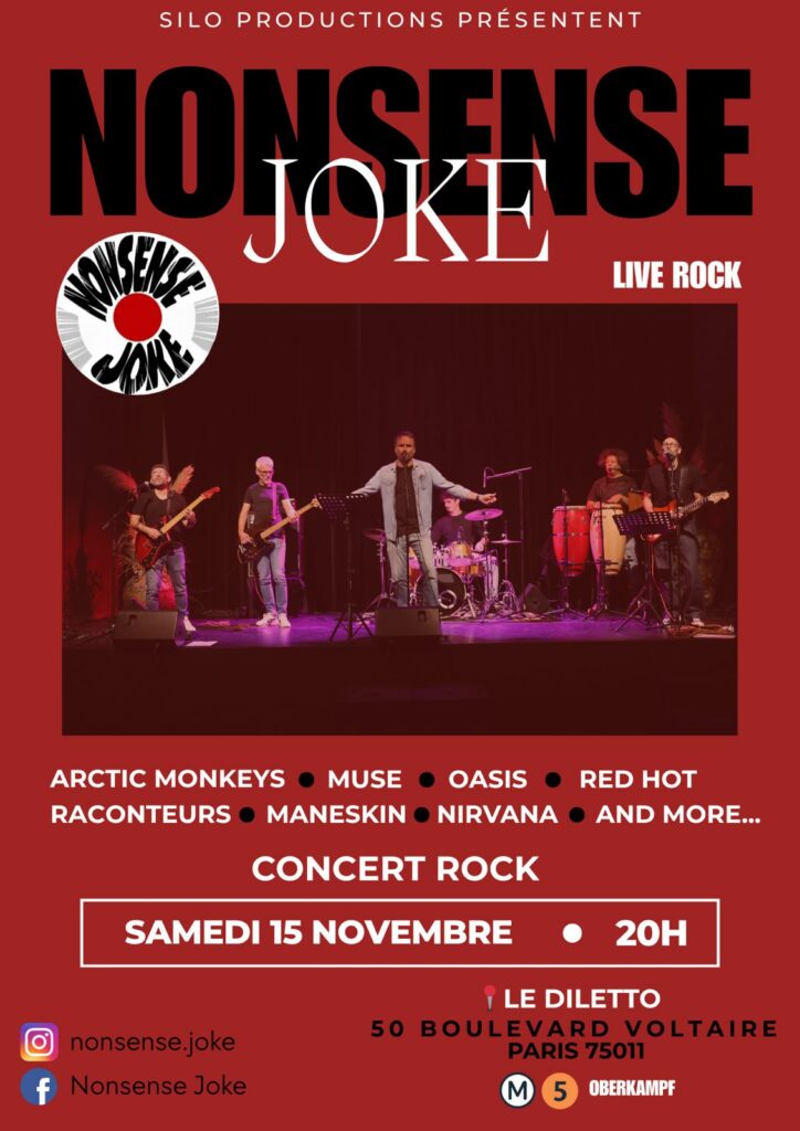 Rendez-vous samedi 15 novembre à 20h au Dileto (50 boulevard Voltaire, Paris) pour une soirée rock sans modération 🤘 Au programme : des riffs, de la sueur, des reprises cultes et une grosse dose de folie made in NoNsEnSe ! 🎸🤘